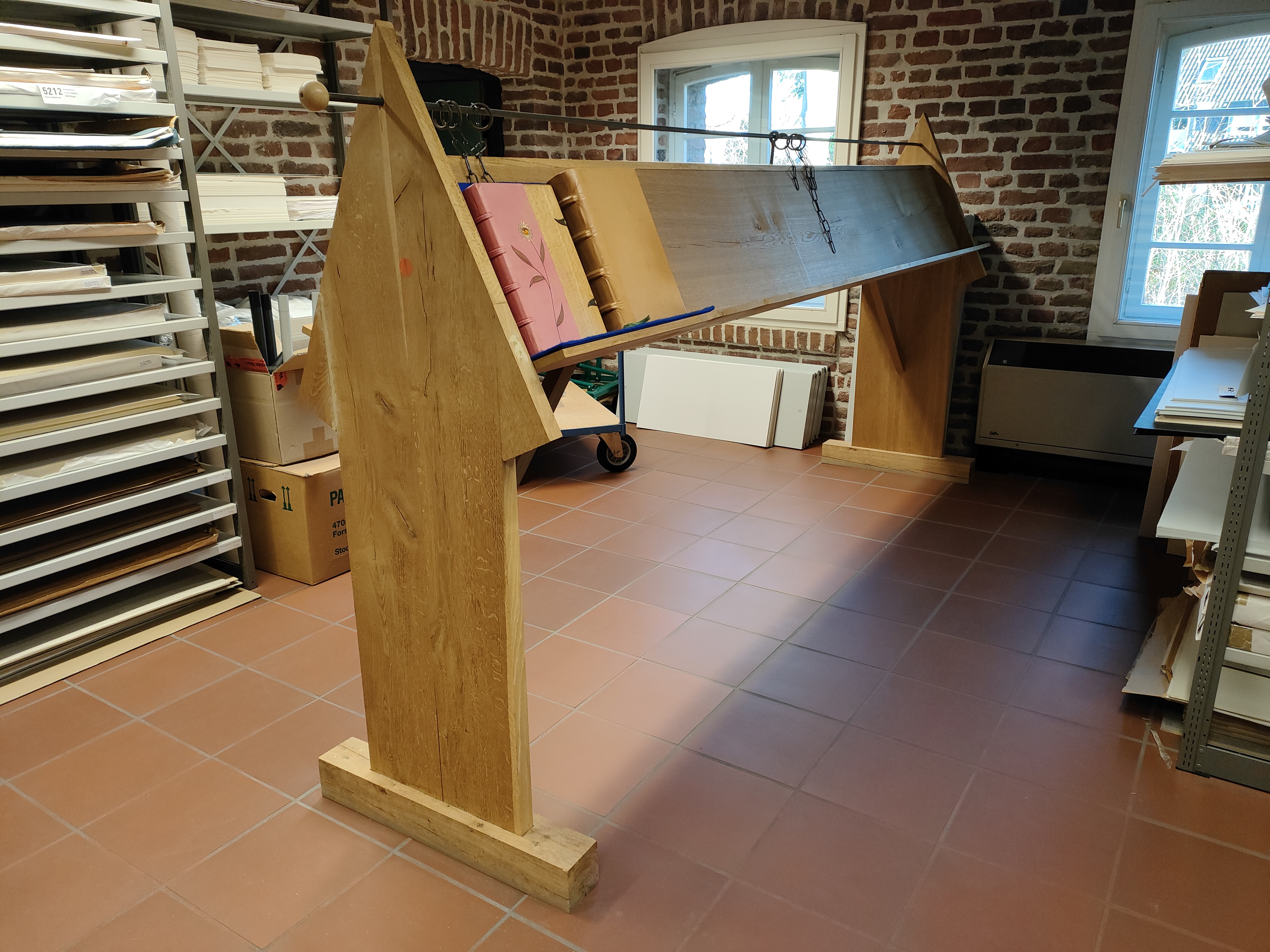 Buchpult im Stile einer mittelalterlichen Kettenbibliothek