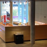 Ausstellungselemente aus MDF und Acrylglas im gebrauchten Zustand