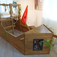 Holzboot, Spielboot, lasiert. Wurde zweimal in einer Ausstellung genutzt, sehr guter Zustand