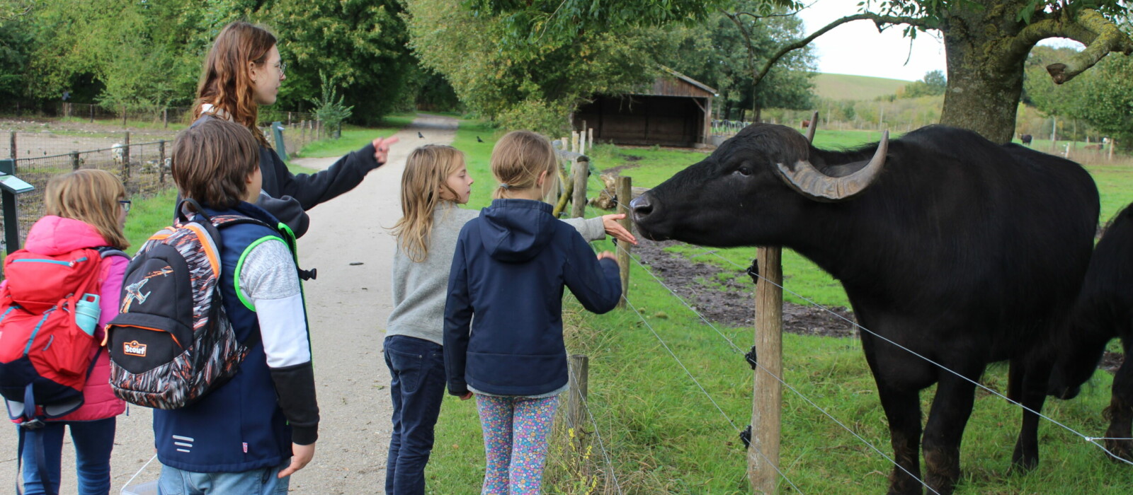 Bei einem Rundgang durch den Landschaftstierpark mit Tierfütterung nehmen die Kinder und Jugendlichen passende Geräusche auf.